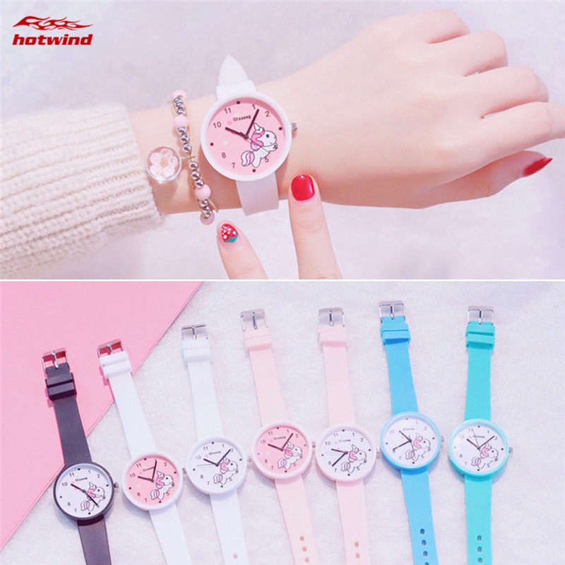 Hw Jam Tangan Quartz Analog Korea Dial Bulat Gambar Unicorn Strap Silikon Warna Permen Untuk Wanita Shopee Indonesia